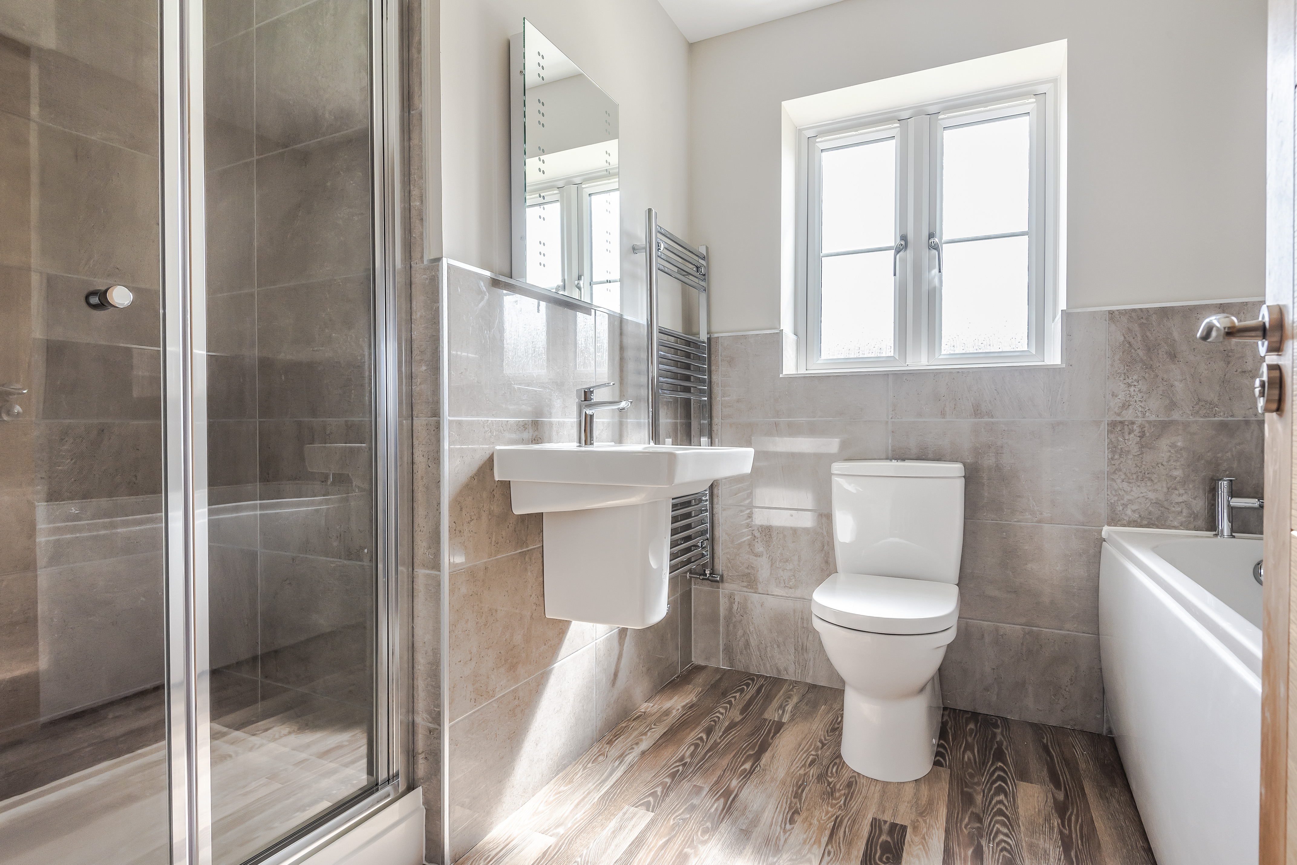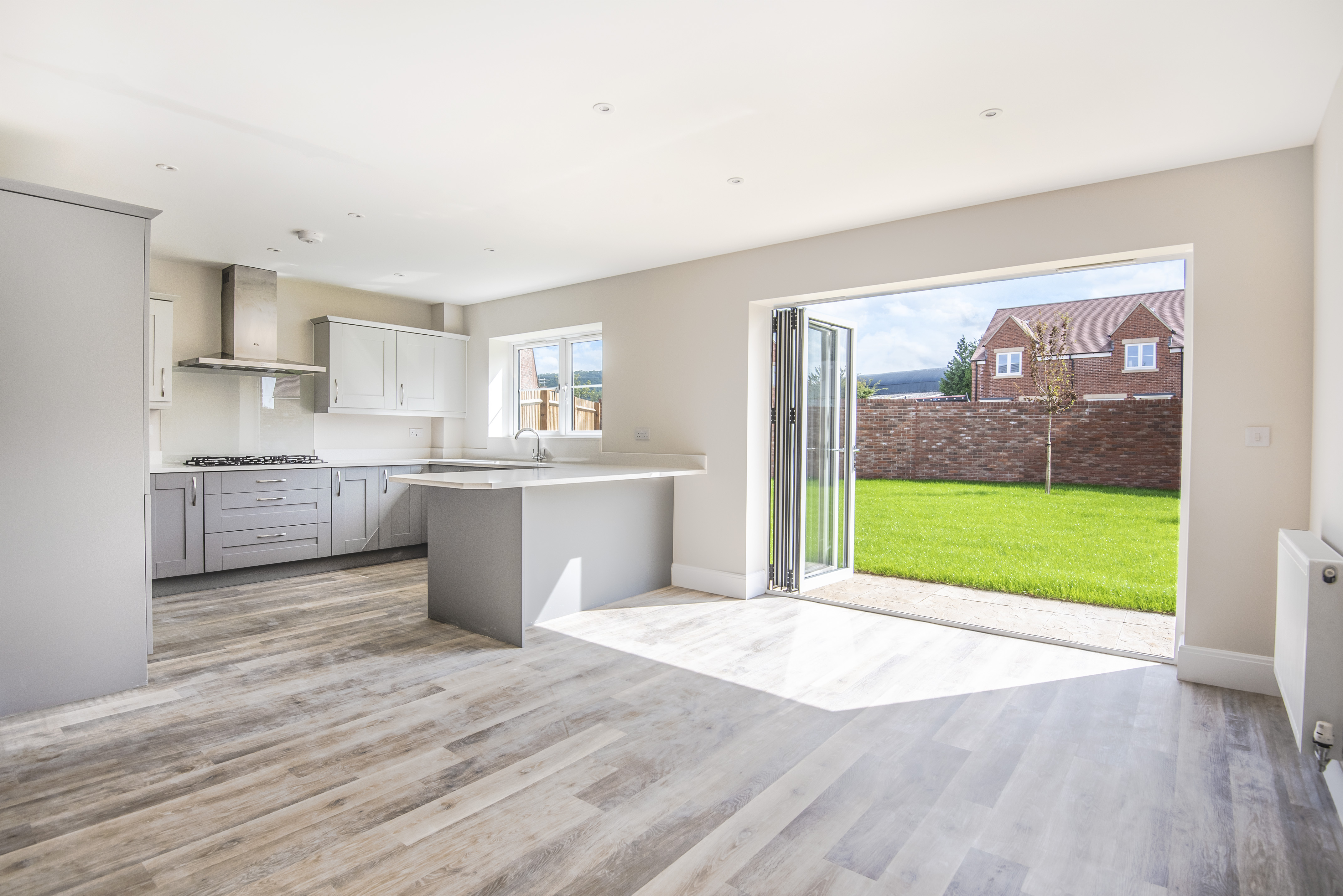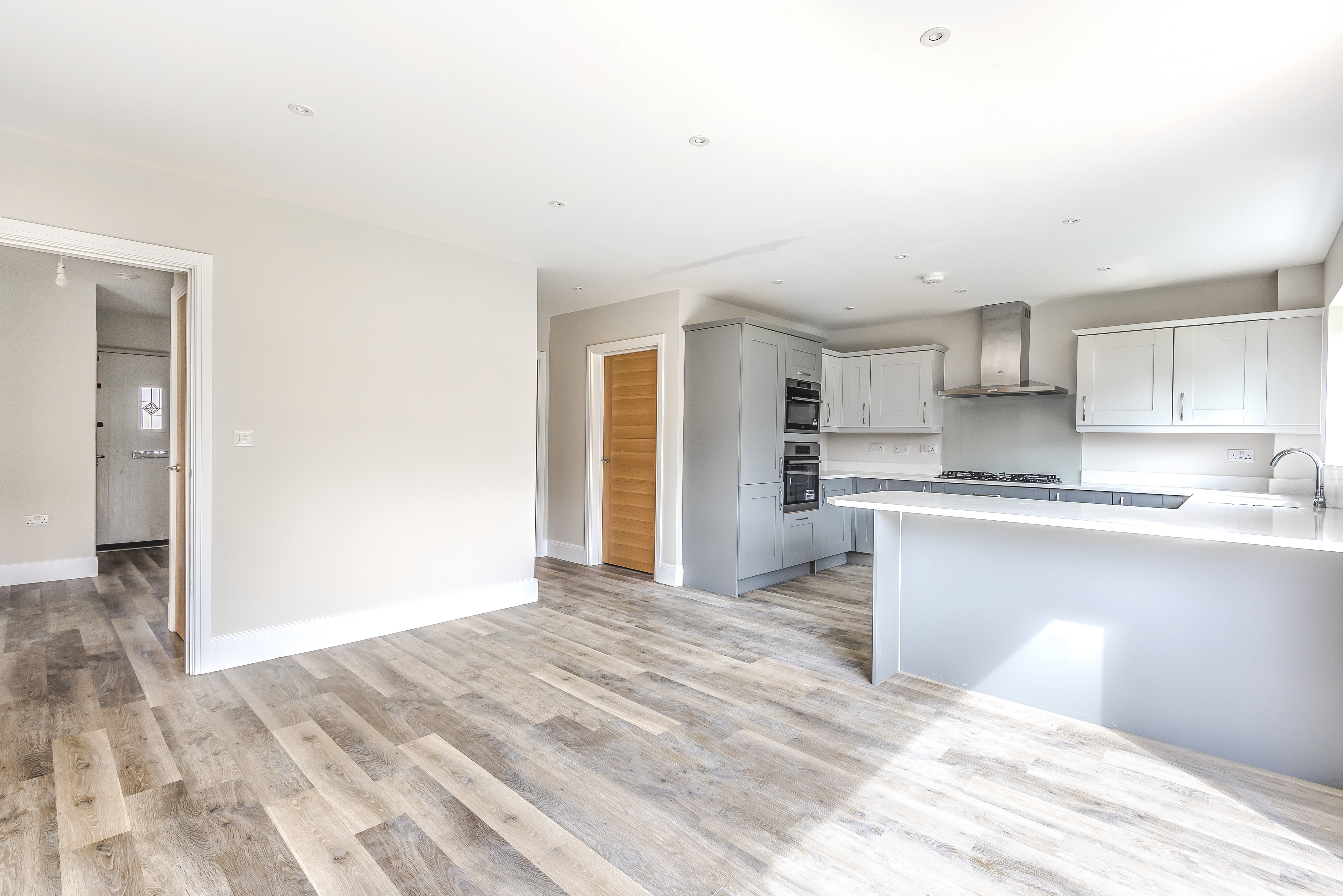 The ground floor comprises an open plan kitchen / family room, utility, living room, dining room and study. Upstairs, there are four double bedrooms, two with en-suites and a bathroom.
